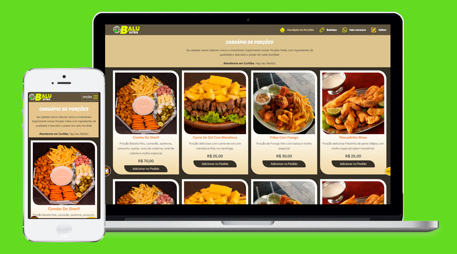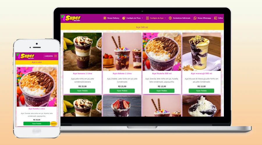 Criamos cardápios exclusivos, totalmente personalizados de acordo com a identidade visual do seu negócio. Eles são responsivos, garantindo uma experiência incrível em qualquer dispositivo.